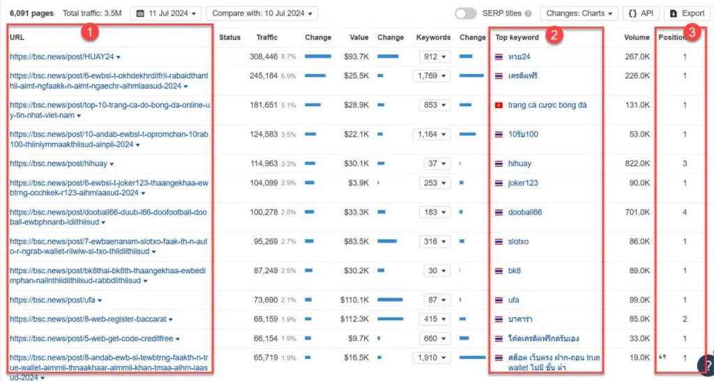 หากเราลองเอาแต่ละเว็บด้านบนไปเช็ค keyword ที่ติดอันดับ เราจะพบเจอคำที่เกี่ยวข้องกับวงการพนันออนไลน์มากมาย
