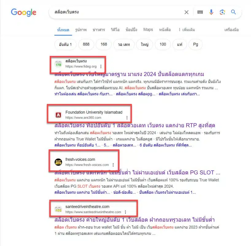 ดูตัวอย่าง ผมค้นหาคำว่า “สล็อตเว็บตรง” บน Google ผมก็พบว่าเว็บไซต์ที่ติดอันดับหน้าแรกของคำนี้ มีชื่อแปลกๆ ทั้งนั้น ไม่เป็นมีชื่อแบบที่เป็นเว็บพนัน เช่น 168 888 99 เลย มีแต่เว็บชื่อะไรก็ไม่รู้ เมื่อเราคลิกเข้าไปดู ก็จะเจอเนื้อหาบนเว็บเป็นเรื่องของ “สล็อตเว็บตรง” แต่เมื่อเอาโดเมนเหล่านี้ไปเช็คต่อ ก็จะพบว่า โดเมนพวกนี้มีอายุเกิน 10 ปีทั้งนั้น